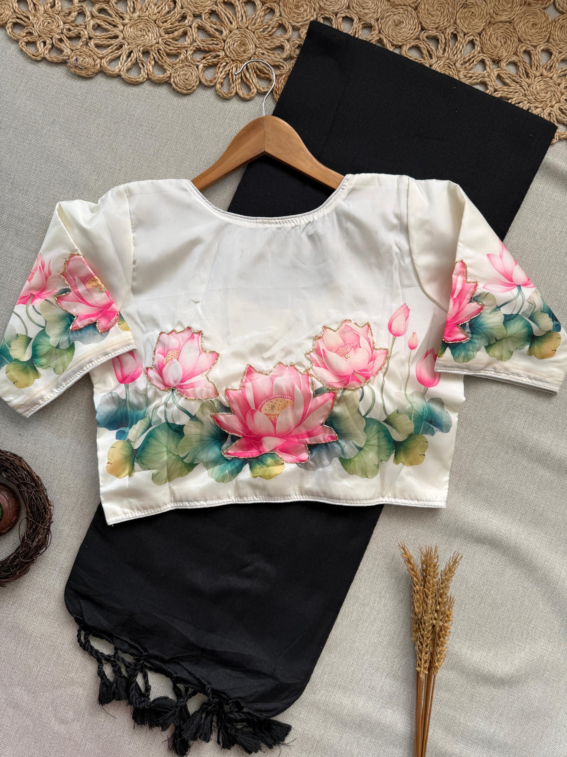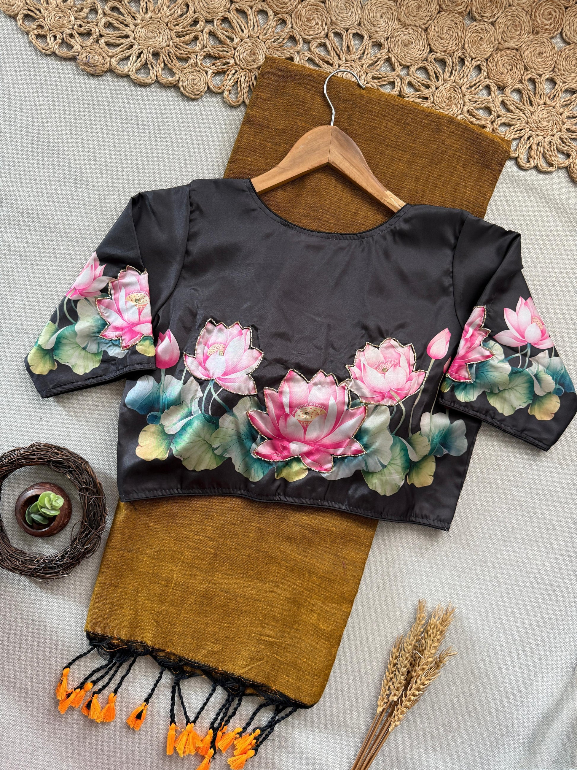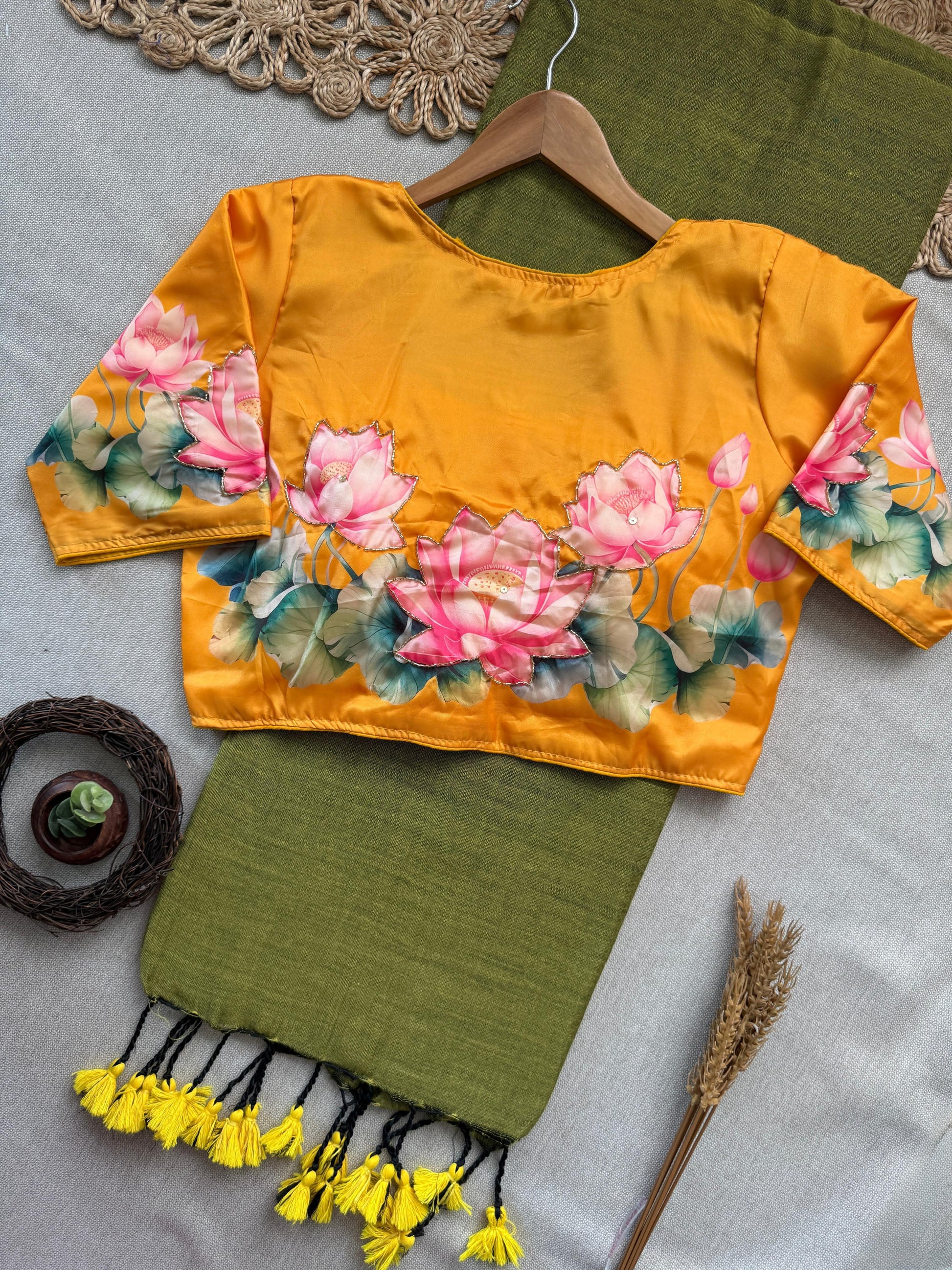 Experience the timeless elegance of this handloom khadi cotton saree, crafted for comfort and style. The breathable khadi cotton fabric ensures a lightweight and natural feel, ideal for all-day wear. Paired with a blouse featuring intricate heavy handwork on cotton silk, padded with a soft cotton silk lining for enhanced comfort and structure. The blouse size is customizable, fitting from 38 to 42 inches, allowing a tailored fit. Versatile in styling, this saree can be effortlessly paired with blouses in any color, offering limitless mix-and-match possibilities.