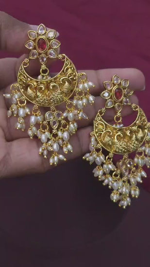 Elevate your jewelry collection with these exquisite Premium Golden Nakshi Ear Rings, meticulously crafted to replicate the intricate artistry of traditional nakshi work. Each piece showcases delicate filigree detailing and ornamental patterns that capture the essence of classic Indian craftsmanship. The golden finish delivers a radiant, luxurious appearance suitable for both festive occasions and everyday elegance. These replica earrings offer the aesthetic appeal of premium jewelry at an accessible price point, making them an ideal choice for those who appreciate timeless design and sophisticated style.