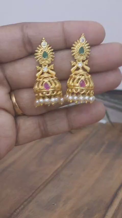 Elevate your ethnic ensemble with this exquisite Premium Golden Jumka, a timeless piece that seamlessly blends traditional craftsmanship with contemporary elegance. Crafted with meticulous attention to detail, these chandelier earrings feature lustrous golden tones that catch light beautifully, making them ideal for weddings, festivals, and special occasions. The intricate design showcases skilled artistry, while the comfortable fit ensures you can wear them throughout your celebration. A versatile accessory that complements both classic and modern ethnic wear, this jumka is an investment in enduring style and sophistication.