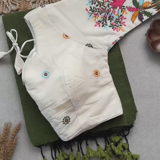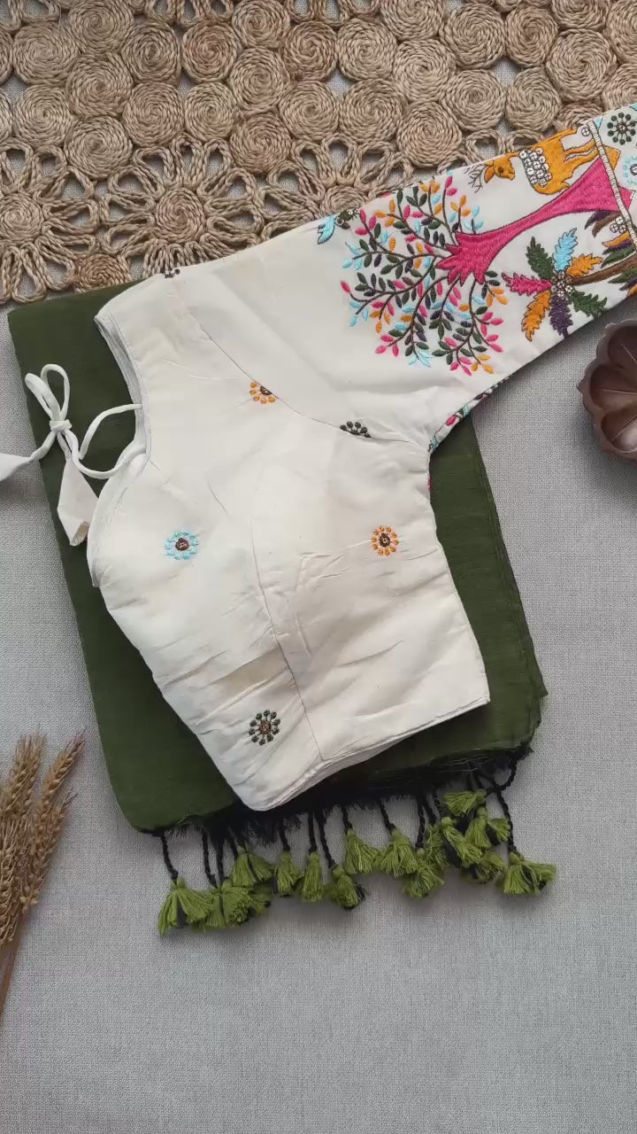 Experience the elegance of the NEW Handloom Khadi Cotton Saree, featuring rich heavy embroidery and a soft Aura cotton padded lining made from pure cotton for added comfort. Its adaptable size ranges from 38 to 42 with a secure hook closure, allowing a perfect fit. Versatile in style, this saree pairs seamlessly with any color combination, making it a timeless addition to your wardrobe.