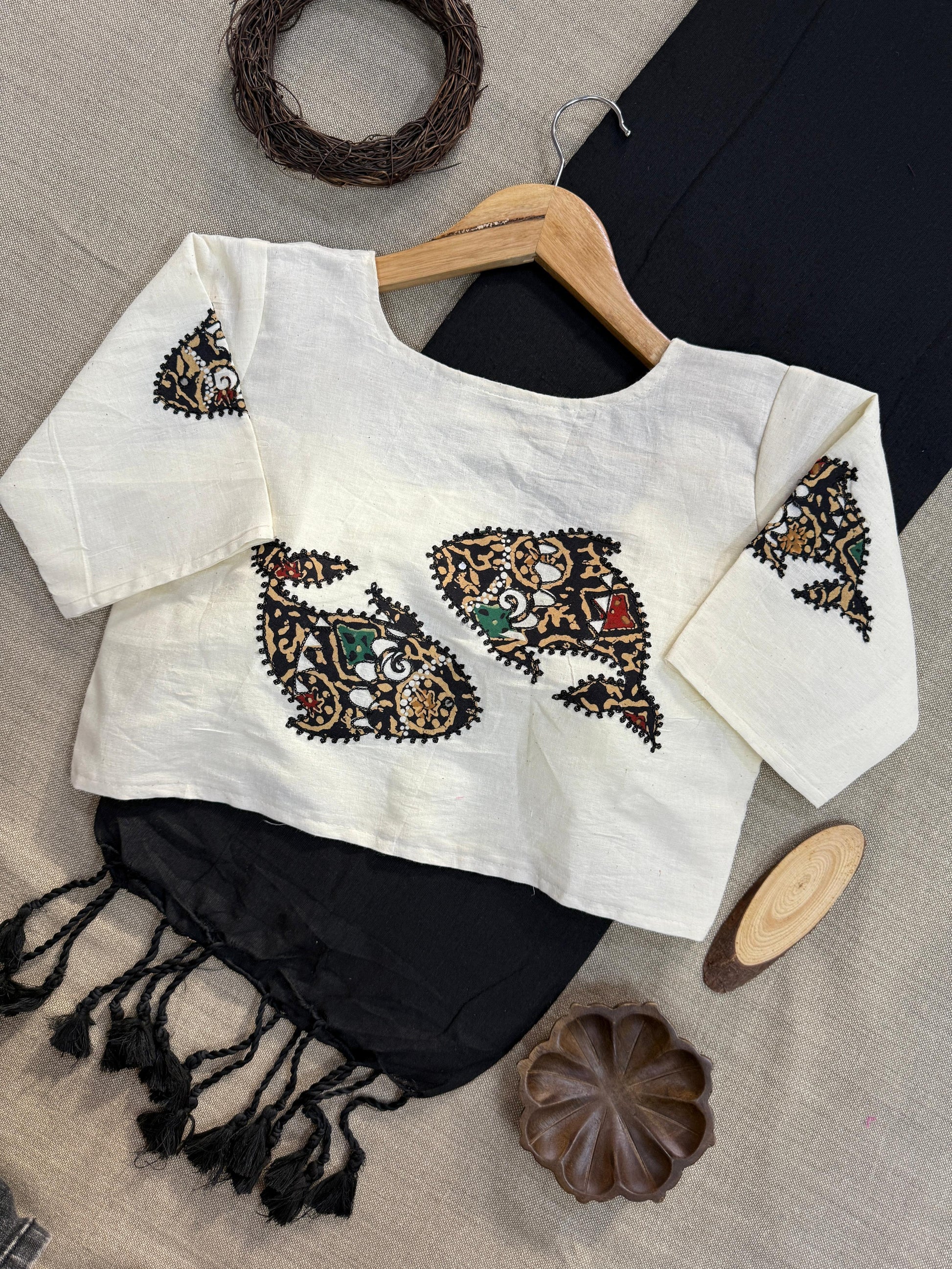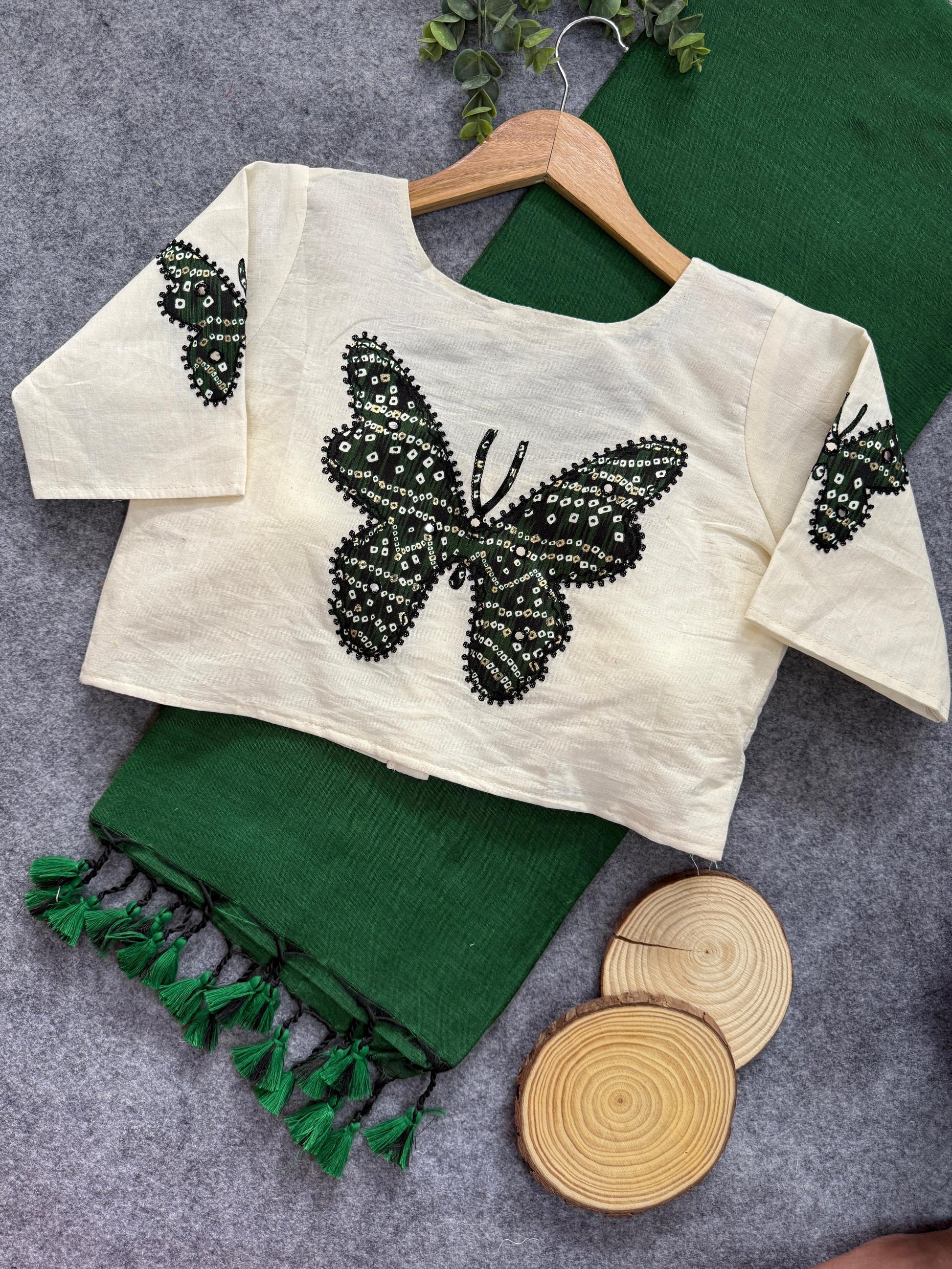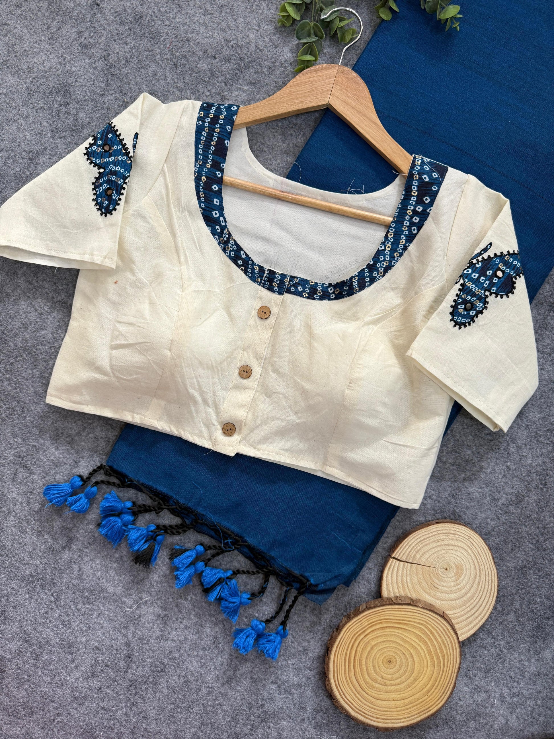 Experience the elegance of the NEW Handloom Khadi Cotton Saree, featuring rich heavy embroidery and a soft Aura cotton padded lining made from pure cotton for added comfort. Its adaptable size ranges from 38 to 42 with a secure hook closure, allowing a perfect fit. Versatile in style, this saree pairs seamlessly with any color combination, making it a timeless addition to your wardrobe.