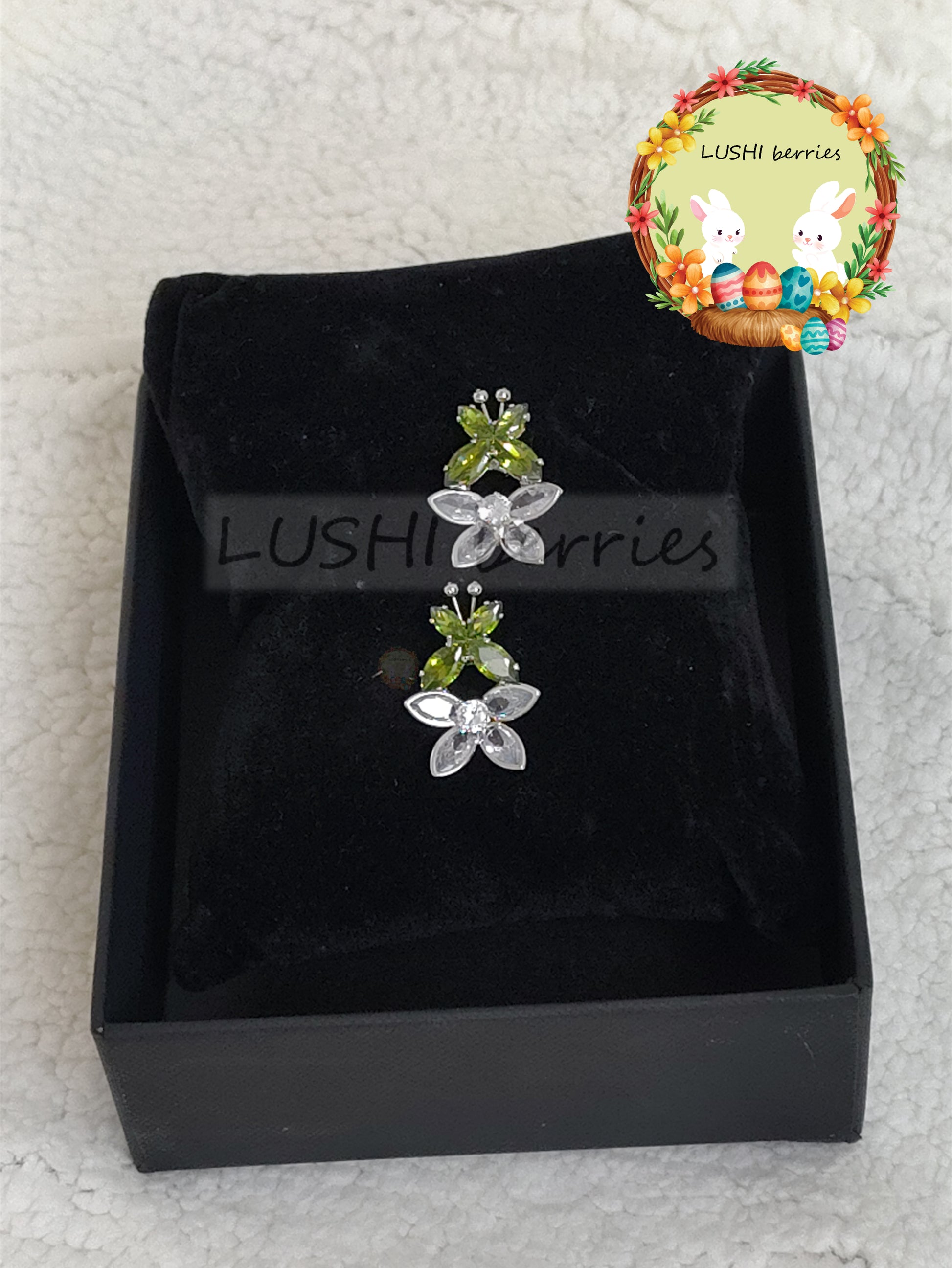 42_Butterfly with white Flower Crystal stone studs with different color options