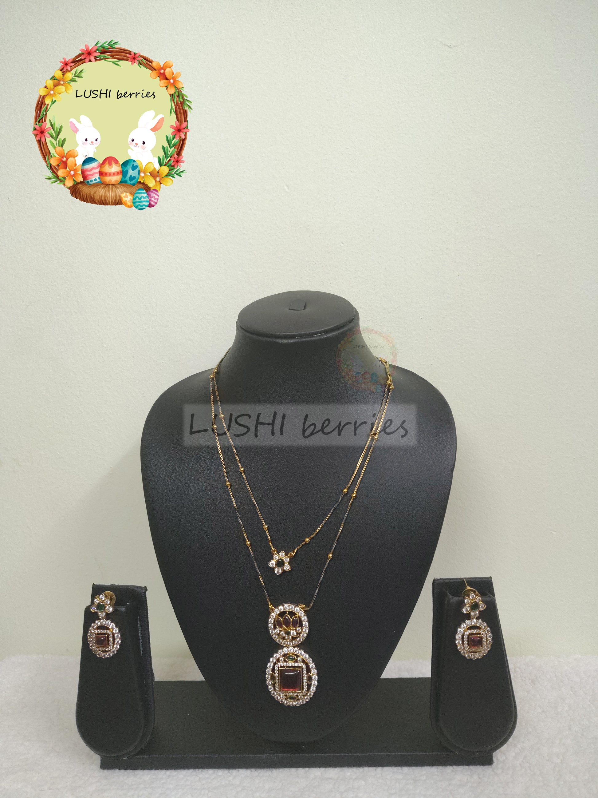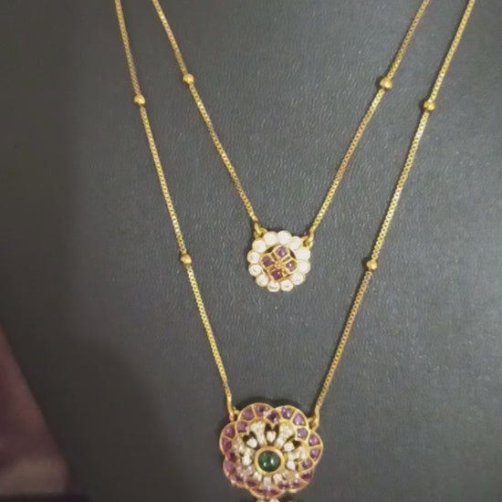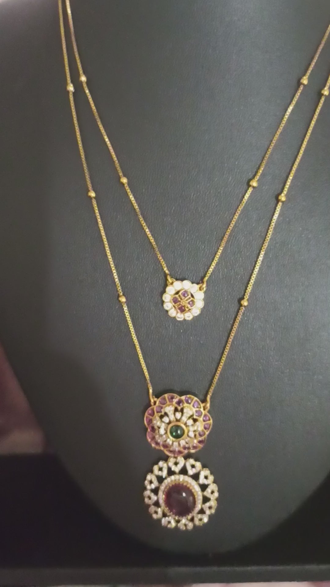 15_Premium Gold Look-alike traditional 2 layer Pendant Chain with Ruby stones
