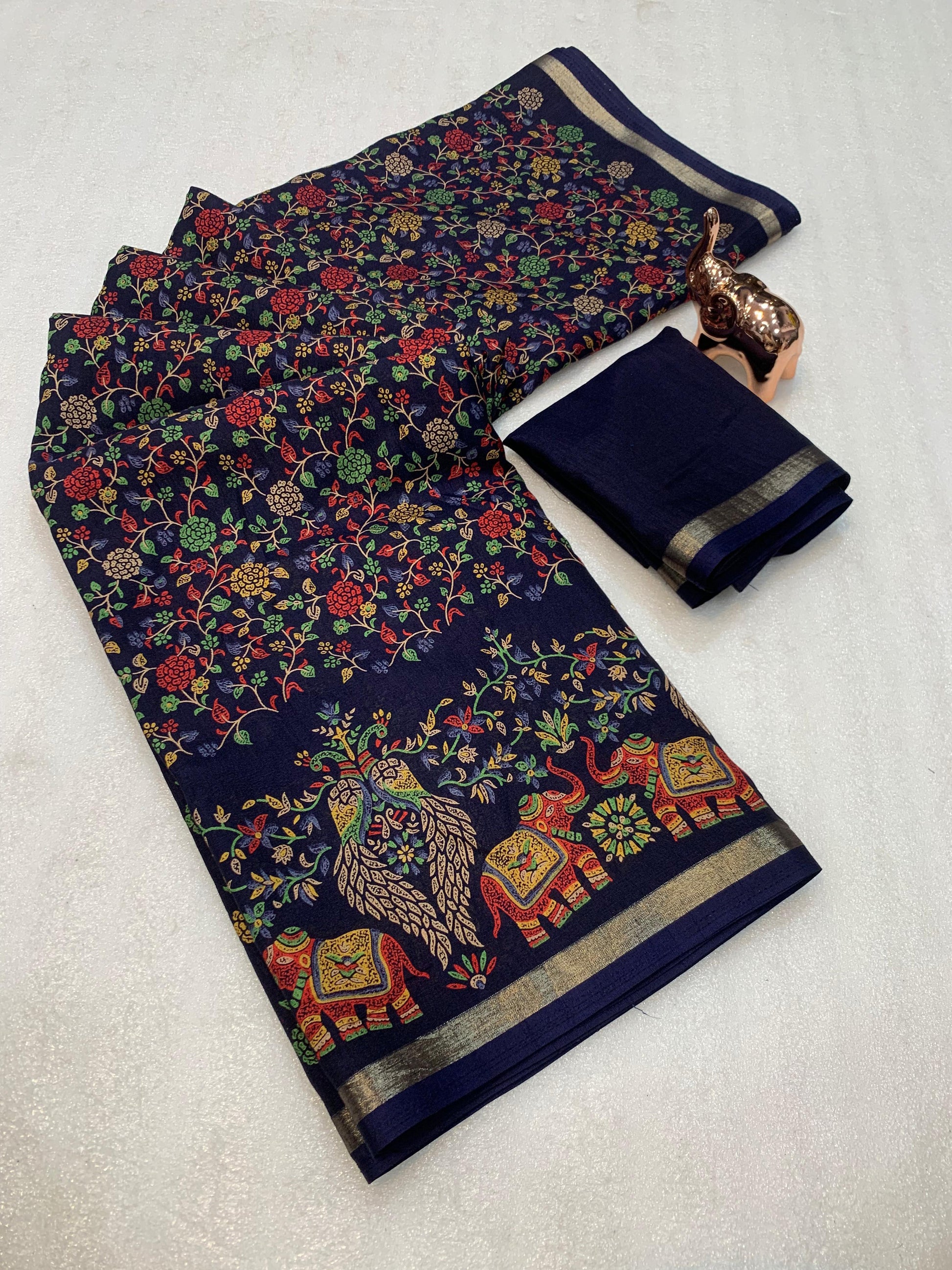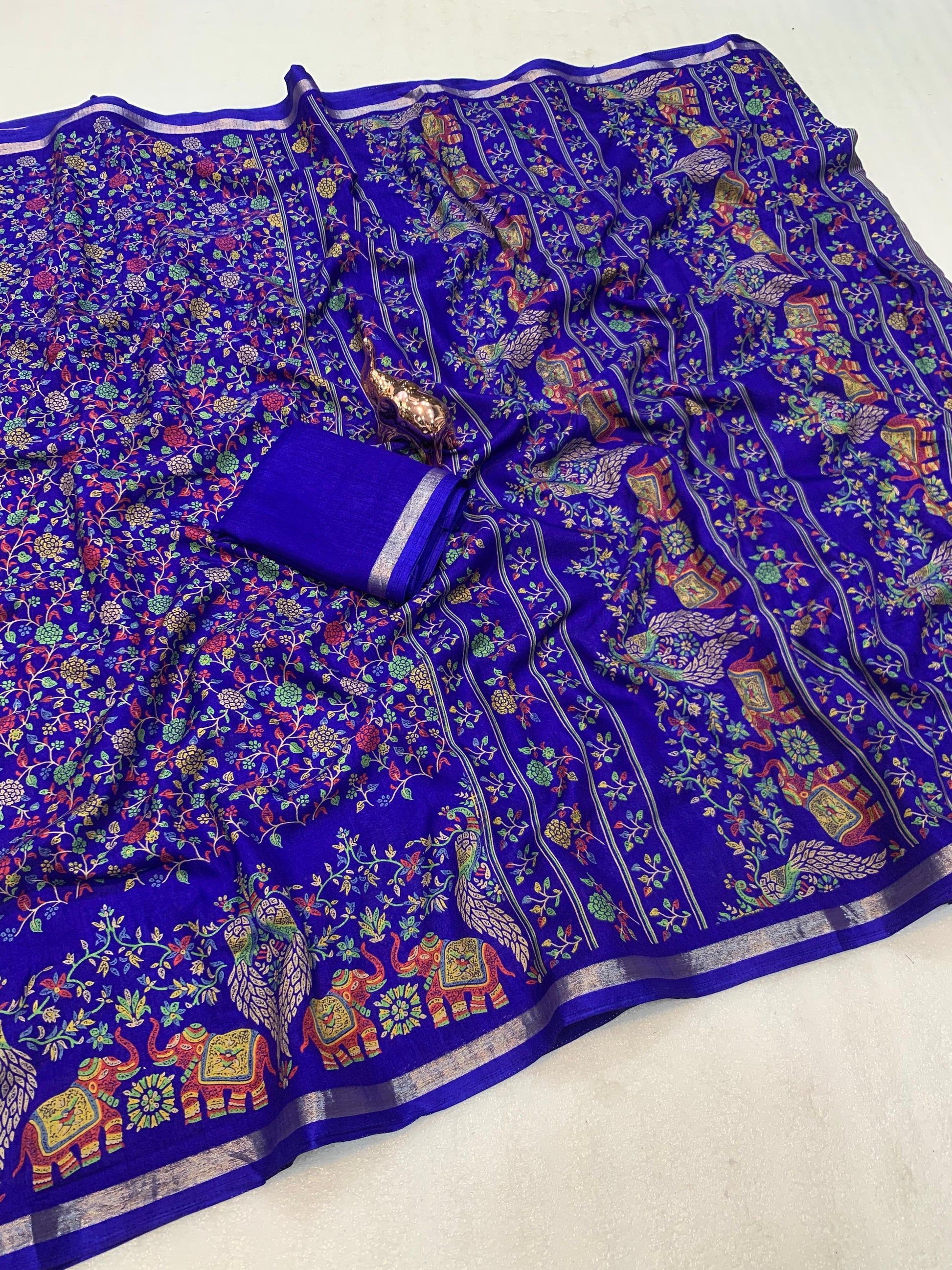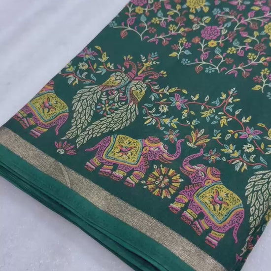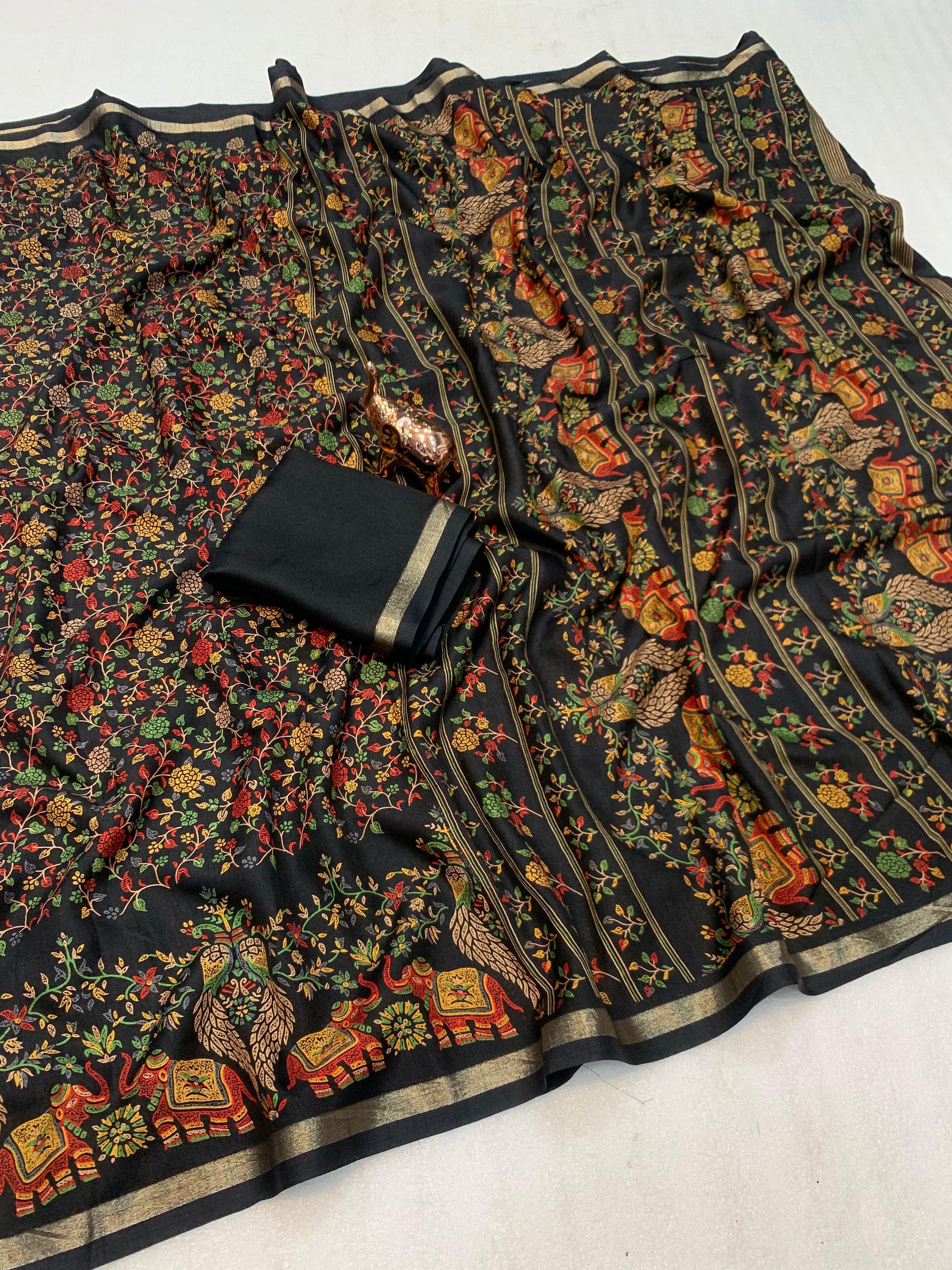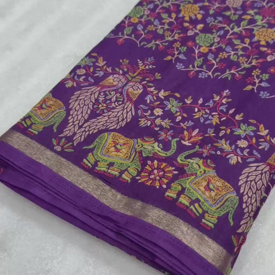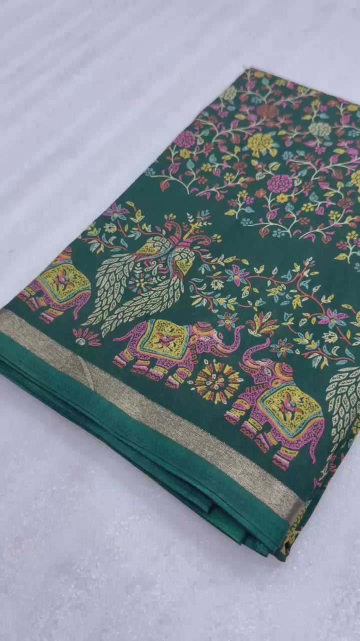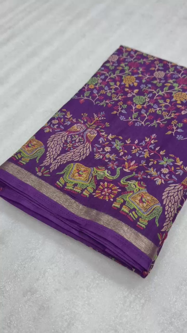 1_Pure soft Tusser Kashmiri printed saree with Rich Pallu & Fancy Golden Border