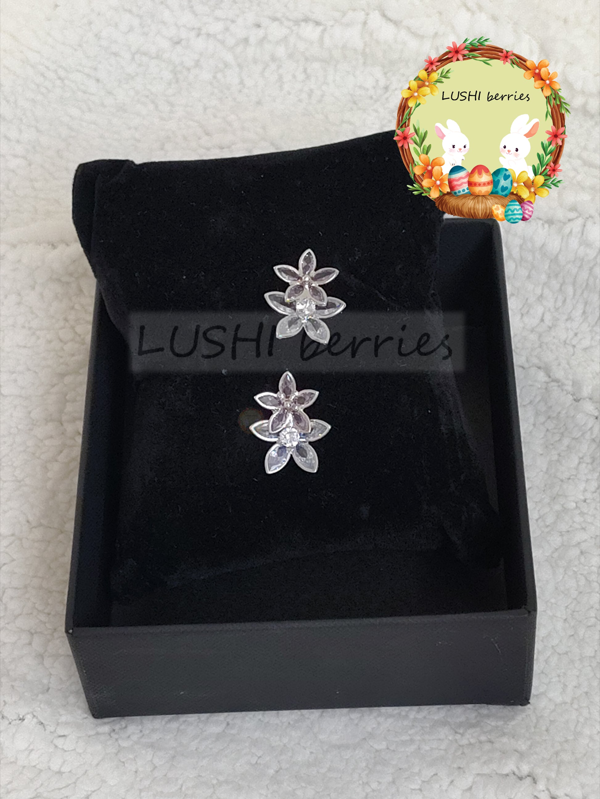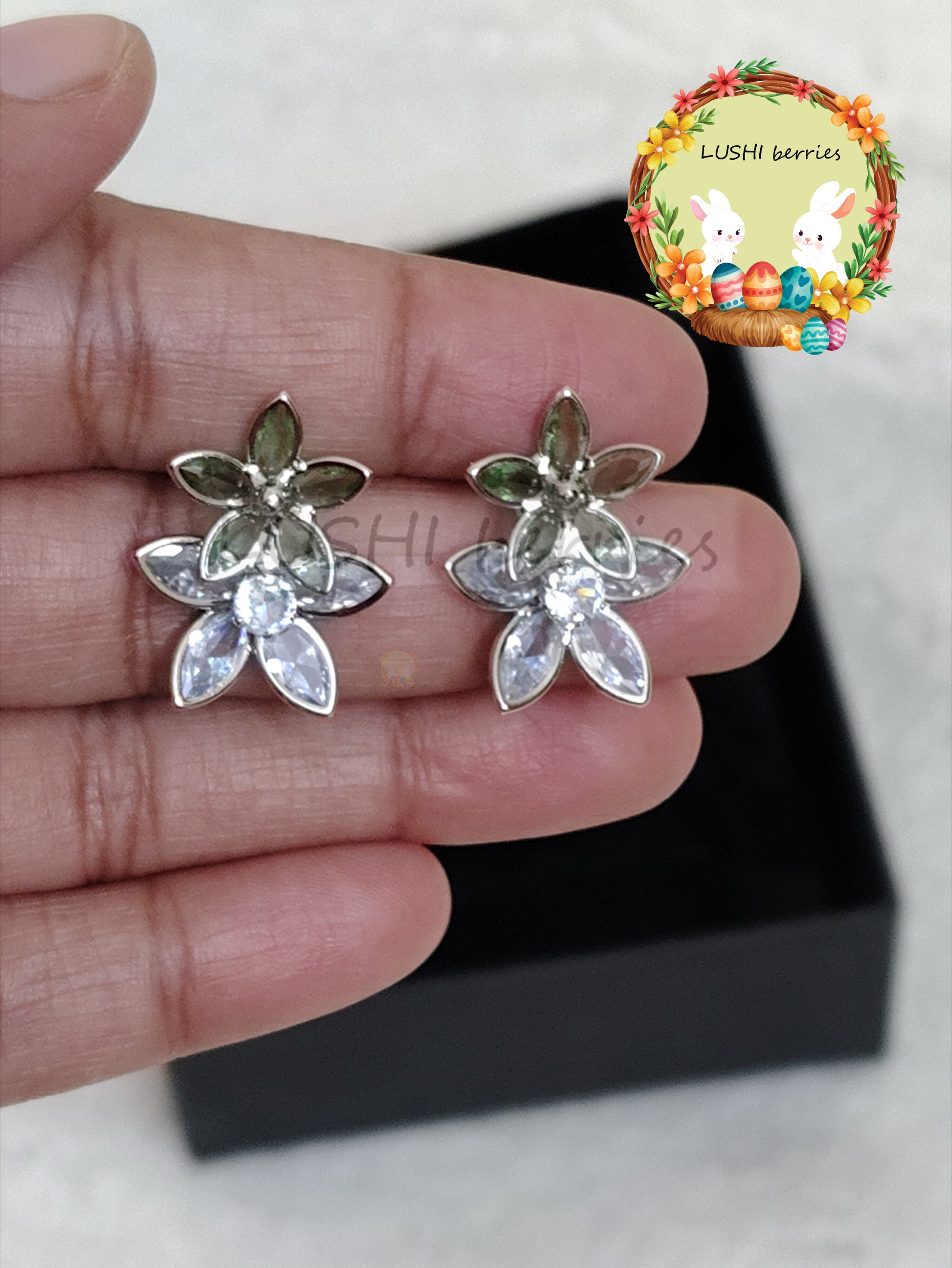 43_White Flower Crystal stone studs with different color options